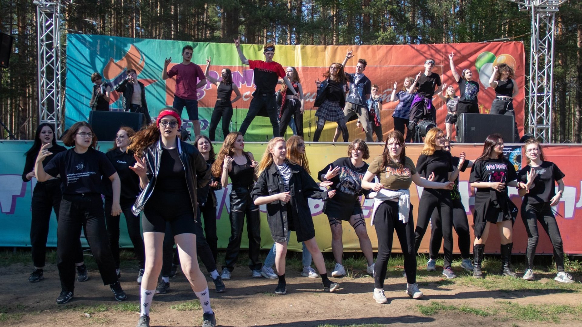 Первый день открывала станционная игра. Каждая станция отражала одно из крупных мероприятий студотрядов Петербурга, проводящие рассказывали о его истории и традициях, а после ребята выполняли соответствующее задание. Следом за игрой все отправились на конкурс флешмобов — 13 новых танцев, которые могли повторять все. Кульминацией первого дня стал музыкальный фестиваль с масштабным запуском красок холи.
